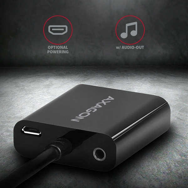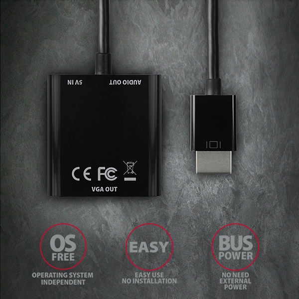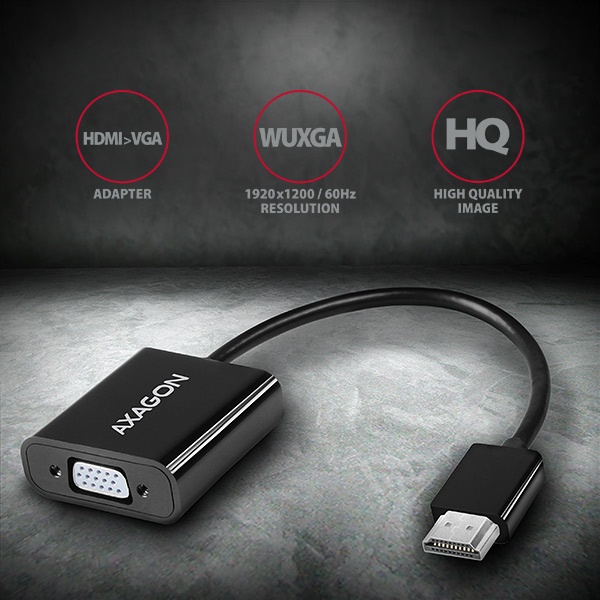 HDMI -> VGA aktivní adaptér AXAGON RVH-VGAN s audio výstupem pro připojení staršího VGA monitoru/TV/projektoru k počítači nebo jinému zařízení s výstupem HDMI. Redukci lze použít i se set-top boxy nebo herními konzolemi Xbox a PlayStation.