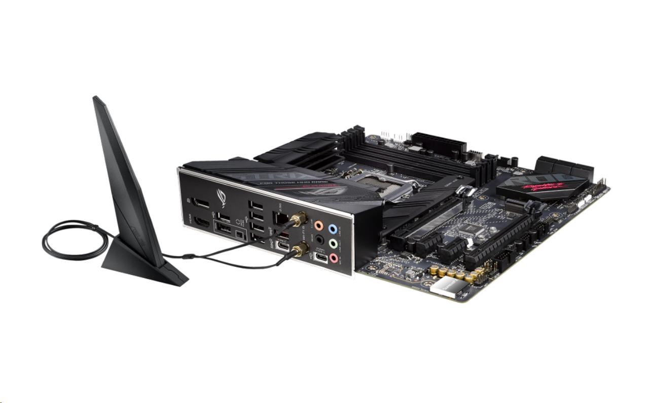 Intel® B560 LGA 1200 micro ATX motherboard with PCIe 4.0, 8+2 teamed power stages, Two-Way AI Noise Cancelation, WiFi 6 (802.11ax), Intel® 2.5 Gb Ethernet, Two M.2 slots with one slot featuring its own heatsink, USB 3.2 Gen 2x2 USB Type-C® , SATA and Aura Sync RGB lighting