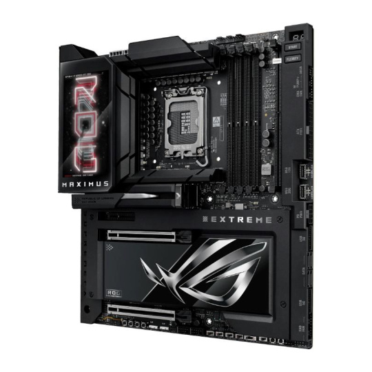 The ROG Maximus Z890 Extreme is the ultimate expression of cutting-edge motherboard technology and performance. Discover the upper limits of Intel® Core™ Ultra Series 2 processors, DDR5 modules, PCIe® 5.0 graphics cards, NVMe storage, USB connectivity, Thunderbolt™ functionality and more – all wrapped up in a sleek package featuring a full-color 5-inch long LCD screen that can deliver vibrant imagery or live system stats to suit your personal tastes.