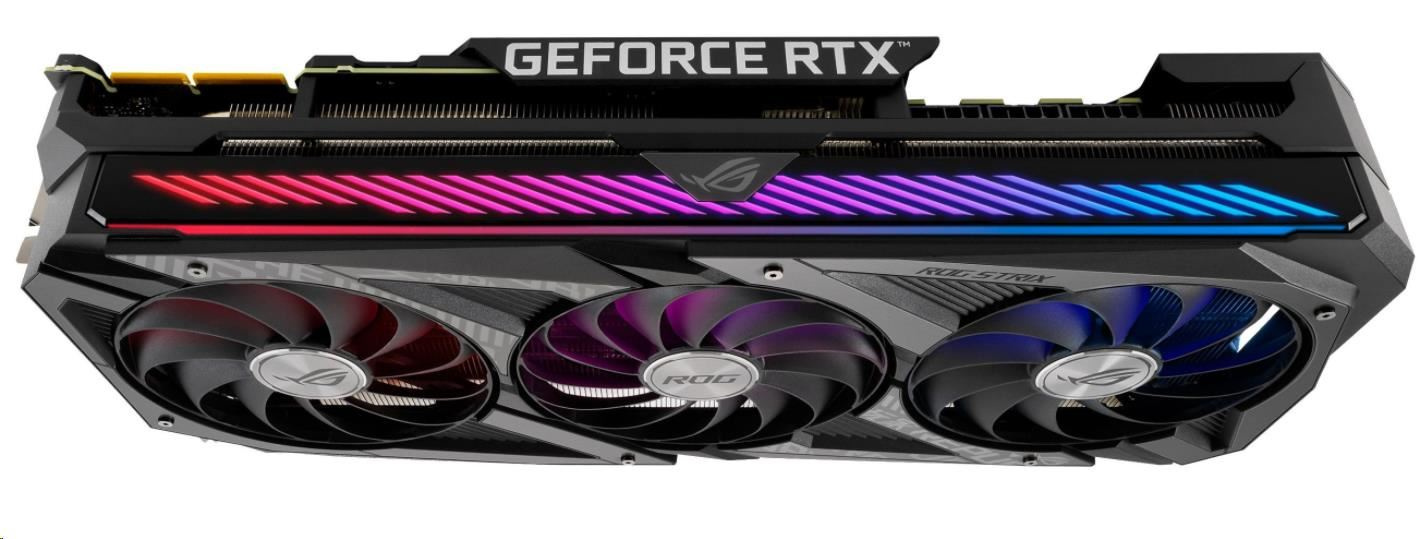 A new shroud with metal accents mirrors the design aesthetic of ROG Strix motherboards. The side is lit with an addressable RGB strip that can be customized with Armoury Crate to
