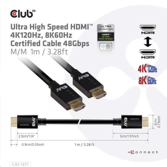 BAZAR - Club3D Kabel Ultra Rychlý HDMI™ Certifikovaný 4K 8K60Hz 48Gbps (M/M), 1m, 30 AWG - Poškozený obal (Komplet)