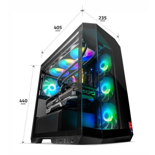 Moderní skříň s ARGB podsvícením, 360° pohledem na komponenty a výborným prouděním vzduchu. Design, který nezůstane bez povšimnutí.