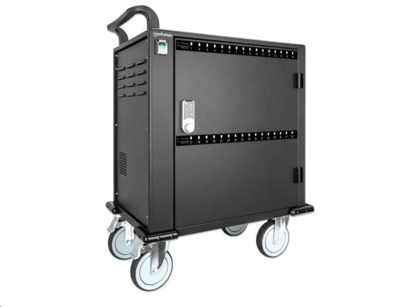 BAZAR - MANHATTAN nabíjecí vozík - 32 portů, 576 W, přepěťová ochrana, tichá ventilace, kovové pouzdro, černá - Poškozen