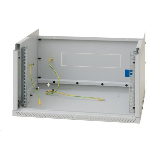 Nastavitelné vertikální lišty: Jeden pár 19“ vertikálních lišt je skokově nastavitelný v přední části rozvaděče. To usnadňuje montáž zařízení i organizaci propojovacích kabelů.
