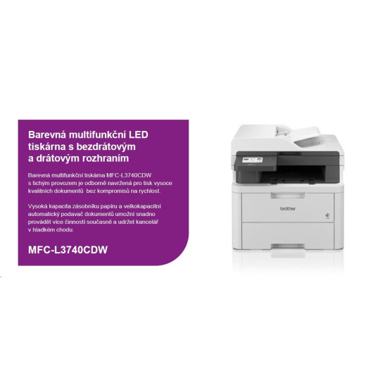 BROTHER multifunkce color LED MFC-L3740CDW - A4 18ppm 512MB 250listů USB WIFI LAN ADF50 duplex fax