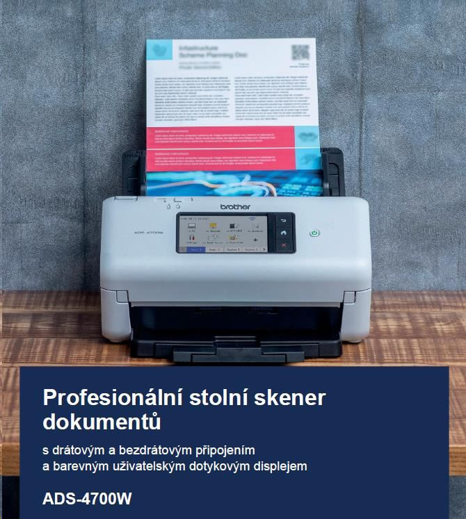 BROTHER skener ADS-4700W DUALSKEN A4 40pppm/80dual 600x600 60ADF USB LAN WIFI - display 10.5cm