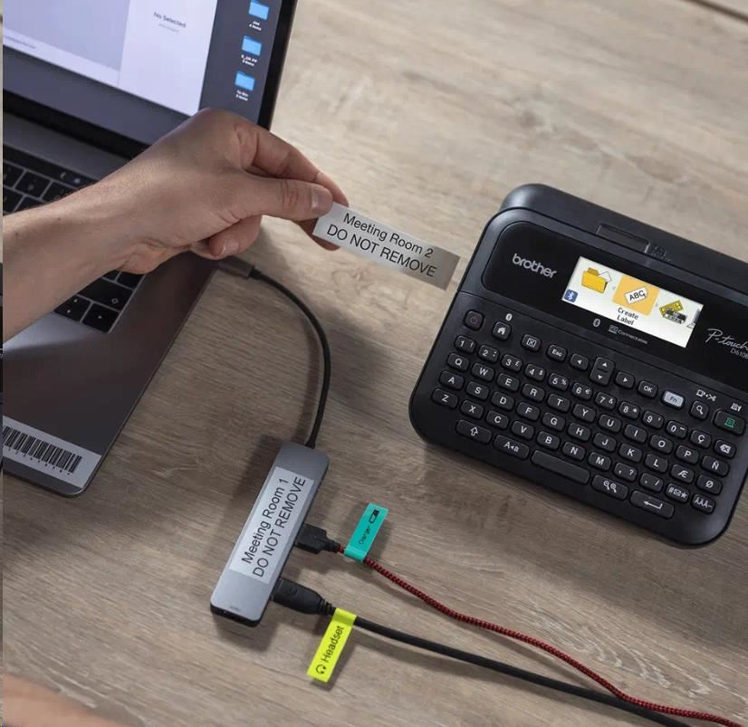Tvořte štítky pomocí vestavěné klávesnice, stáhněte si aplikaci Brother iPrint&Label a spojte se s mobilním zařízením/tabletem, nebo se připojte k počítači přes USB pro další funkce návrhu štítků pomocí softwaru P-touch Editor. Ideální pro samostatné použití - s integrovanou QWERTY klávesnicí a velkým grafickým displejem s náhledem tisku je stolní model PT-D610BT uživatelsky přívětivý a navržený pro snadné použití, rychlé zadávání textu a optimální manipulaci.