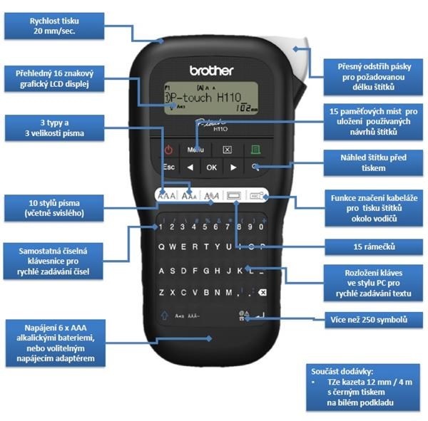 BROTHER tiskárna štítků PT-H110 - 12mm, pásky TZe - popisovač
