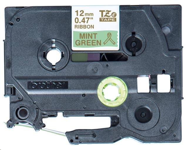 BROTHER TZE-RM34 - kazeta TZ šířky 12mm, TEXTILNÍ páska 4m- pro tvorbu dárků - NELEPÍCÍ - MÁTOVÁ PÁSKA ZLATÝ POTISK gold