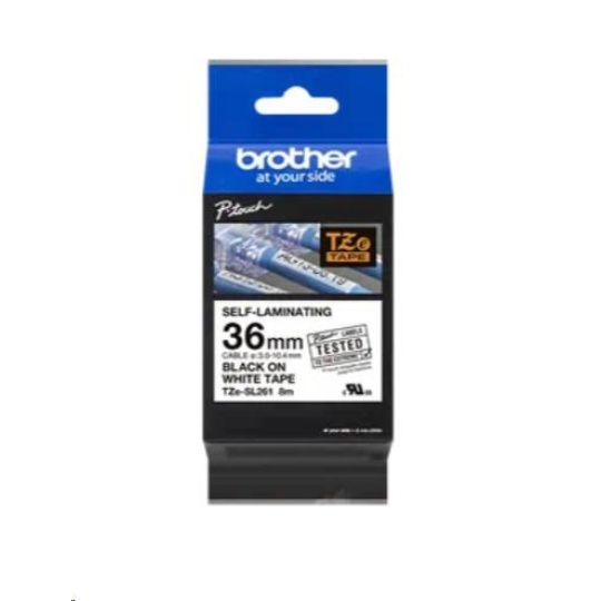Samolaminovací páska TZe-SL261 s délkou 36 mm s černým tiskem na bílé byla vyvinutá pro dlouhodobou identifikaci síťových kabelů. Má speciální lepicí vlastnosti štítků pro trvanlivé pevné ovinutí kolem vašich vodičů a kabelů. Kompatibilní s některými modely P-touch, které používají pásky TZe 36 mm.