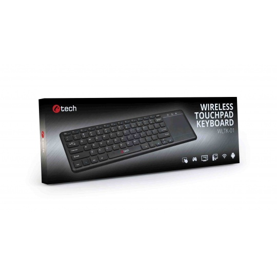 C-TECH klávesnice WLTK-01, bezdrátová s touchpadem, černá, USB