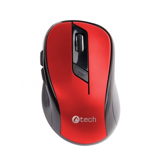 C-TECH myš WLM-02, černo-červená, bezdrátová, 1600DPI, 6 tlačítek, USB nano receiver