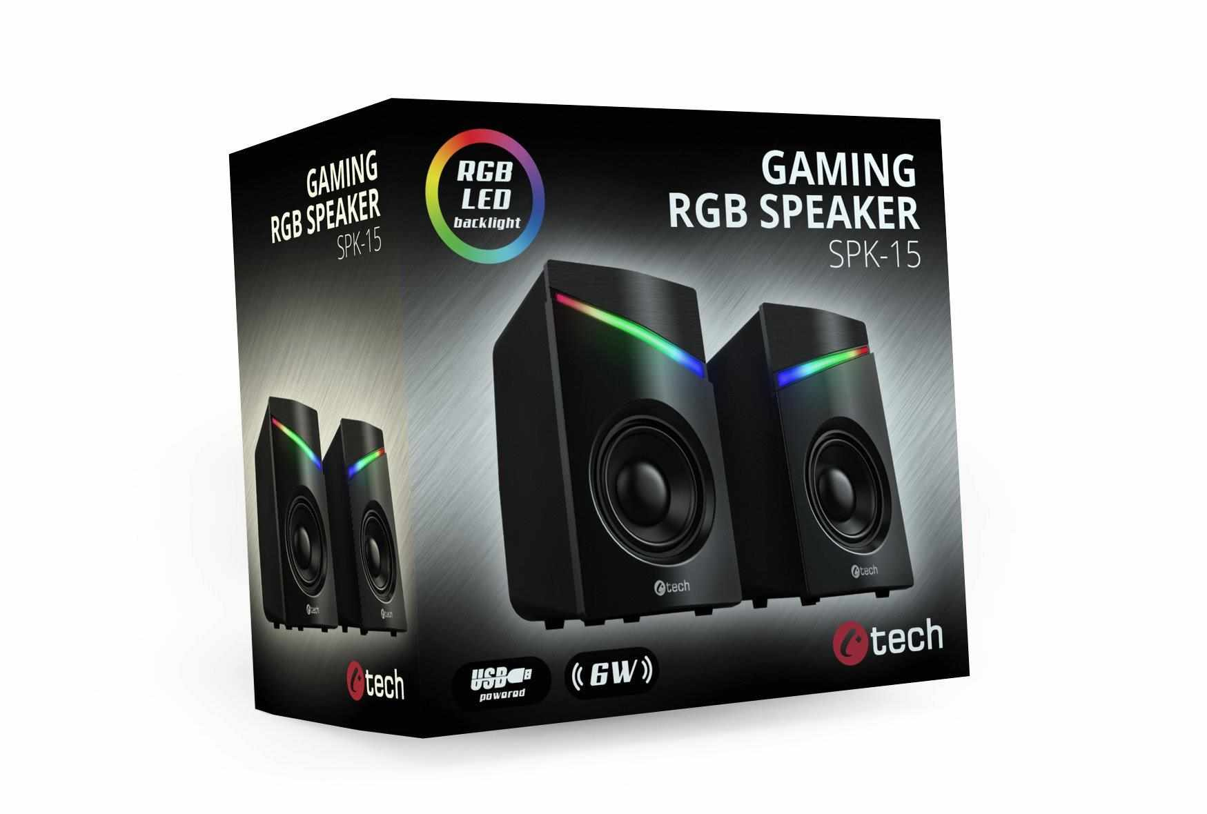 C-TECH reproduktory SPK-15, 2.0, RGB, černá