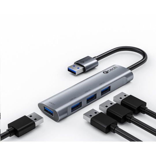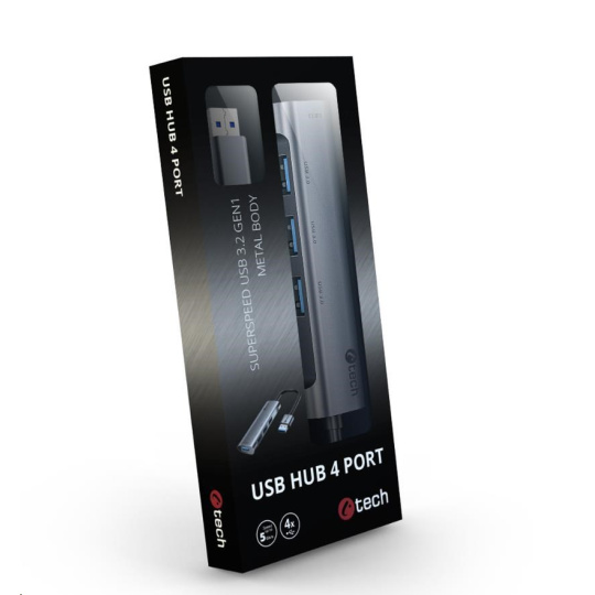 HUB USB C-tech UHB-U3-AL, 4x USB 3.2 Gen 1, hliníkové tělo