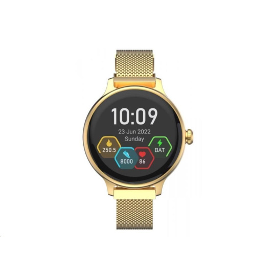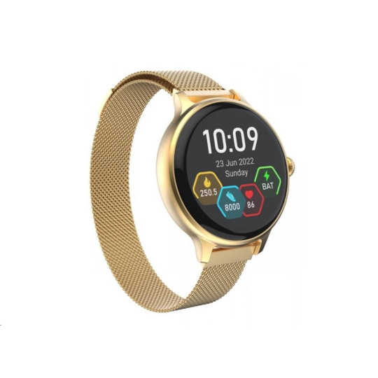 Luxusní fitness hodinky CARNEO HERO mini HR+ s Milánským, kovovým řemínkem s barevným Super HD AMOLED displejem. Monitorují vaši denní aktivitu, výšku stresu a lze je spárovat s mobilním telefonem, díky čemuž Vás upozorní na příchozí hovor či SMS. Jejich dokonalé, minimalistické kovové tělo s jednoduchými křivkami je tak návykové, že je nebudete chtít po prvním nošení sundat z ruky. Hodinky Vám umožňují vyřídit telefonický hovor přes zabudovaný mikrofon a reproduktor, pokud budete v dosahu spárovaného telefonu (vzdálenost až 10 metrů).
