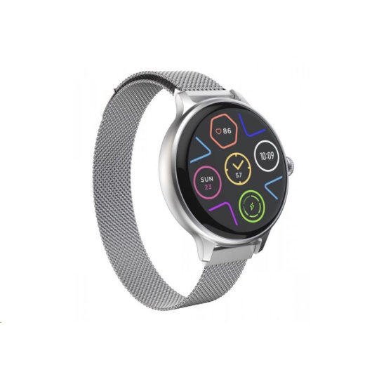 Luxusní fitness hodinky CARNEO HERO mini HR+ s Milánským, kovovým řemínkem s barevným Super HD AMOLED displejem. Monitorují vaši denní aktivitu, výšku stresu a lze je spárovat s mobilním telefonem, díky čemuž Vás upozorní na příchozí hovor či SMS. Jejich dokonalé, minimalistické kovové tělo s jednoduchými křivkami je tak návykové, že je nebudete chtít po prvním nošení sundat z ruky. Hodinky Vám umožňují vyřídit telefonický hovor přes zabudovaný mikrofon a reproduktor, pokud budete v dosahu spárovaného telefonu (vzdálenost až 10 metrů).
