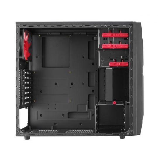 | 1x 120mm fan (at the bottom), 1x 120mm fan (at the front), 1x 120mm fan in VGA card holder, 2x 120mm (left side panel)