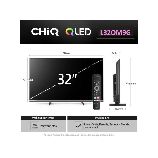 CHiQ L32QM9G TV 32", FHD, QLED, metalická bezrámečková, smart, Google TV, Dolby Audio, HDR, Chromecast