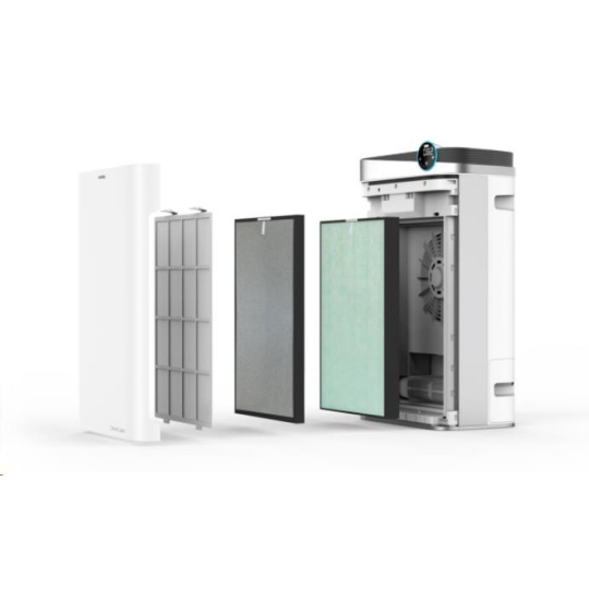 vhodná pro velikost místnosti 34 až 58 m2 ? objem vyčištěného vzduchu (CADR) – pevné částice 488 m3/h, formaldehyd 90 m3/h ? zabudované čidlo pro měření pevných částic PM2.5 a řízení automatického režimu ? 8-stupňový filtrační systém (předfiltr, filtr studené katalýzy, filtr s aktivním uhlím, antibakteriální filtr, HEPA filtr, ultrafialové sterilizační světlo, vodní filtr, ionizátor) ? funkce zvlhčovače vzduchu ? podpora platformy Tuya, zobrazení dat a ovládání přes aplikaci Tuya Smart nebo Smart Life ? možnost integrace/ovládání přes Google Home, Alexa ? přenos dat na internet pomocí WI-FI připojení ? snadno čitelný inverzní LCD displej s vysokým kontrastem ? senzor okolního světla pro automatické přepnutí do režimu spánku ? LED indikátor čistoty vzduchu (zelená, modrá, žlutá, nebo červená barva) ? měření pevných částic PM2.5 ? dětská pojistka ochranného krytu filtrů ? funkce ionizátoru s možností vypnutí ? ultrafialové sterilizační světlo s možností vypnutí ? 8 rychlostí ventilátoru ? tichý chod, ?38,0 dB (nízká rychlost) ? automatický režim, manuální režim, režim spánku ? časovač nastavitelný od 1 do 12 hodin, v aplikaci lze také zvolit různé časy pro různé dny ? automatické připomínání nutnosti výměny filtrů ? omyvatelný předfiltr ? bezkartáčový motor s vysokou životností ? příkon 85 W ? dotyková tlačítka ? dálkový ovladač ? rozměry 401 x 662 x 232 mm ? Hmotnost 11,3 kg