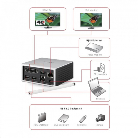 | Output Configuration | USB 3.1 Gen 1 to HDMI™ / DVI / USB 3.1 Gen 1 x4 / Ethernet / Audio, Mic Combo jack |