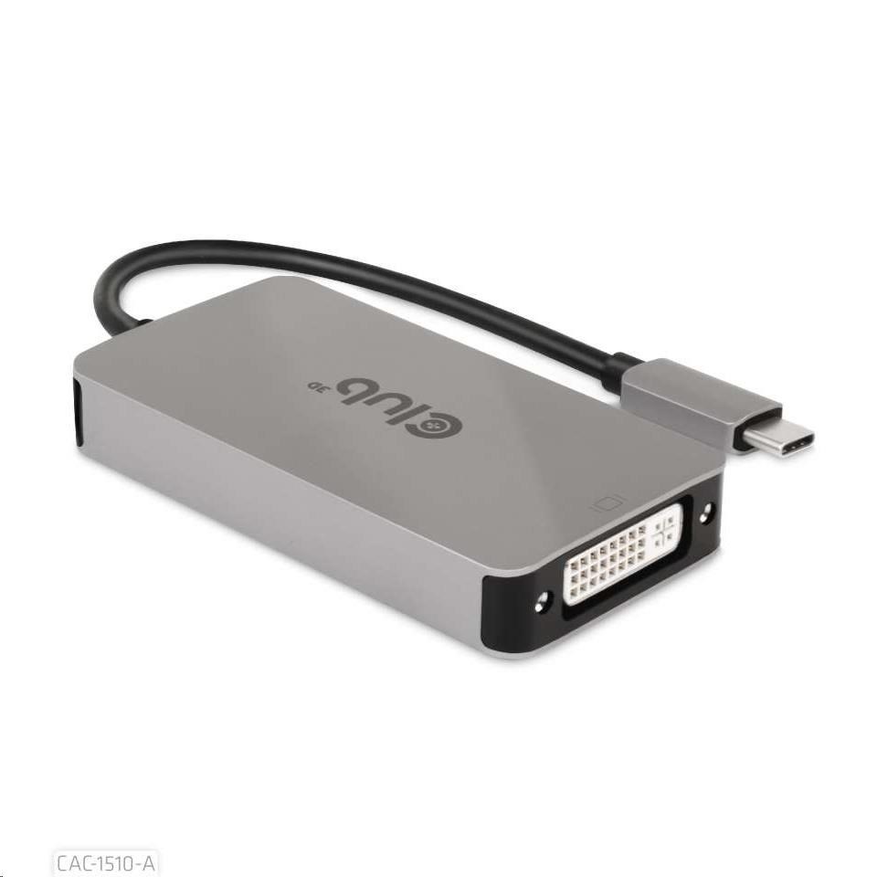 The Club 3D CAC-1510-A is a USB3.2 Gen1 Type-C input to Dual Link DVI-D or Single Link DVI output adapter HDCP OFF version for Apple Cinema Displays or other displays which do not support HDCP.