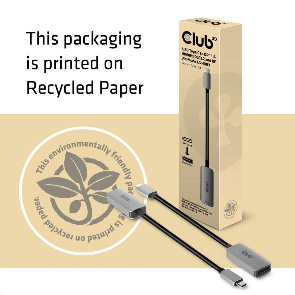 Club3D Adaptér aktivní USB-C na DisplayPort 1.4, 8K60Hz DSC1.2 HDR HBR3