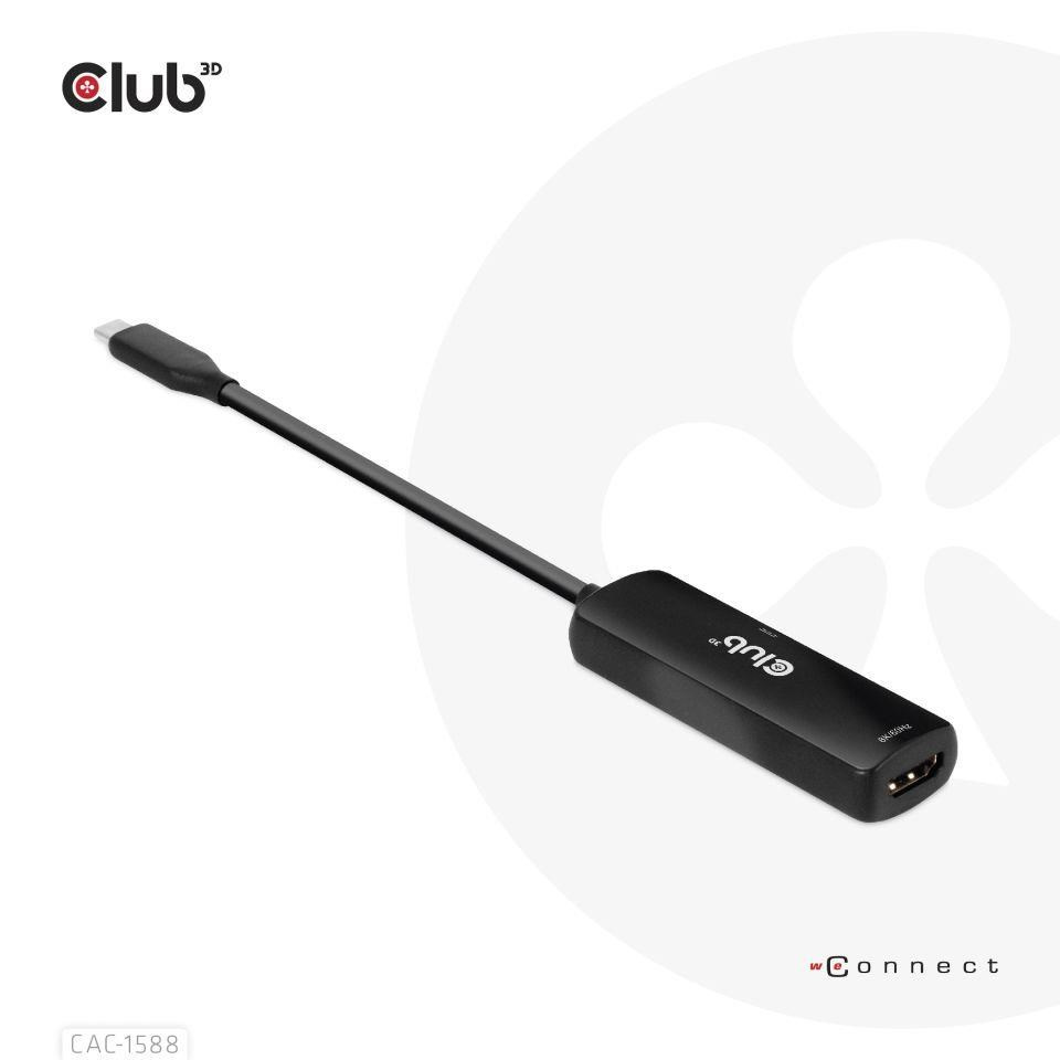 The Club 3D CAC-1588 is a USB Type-C to HDMI™(8K60Hz or 4K120Hz) Adapter with PD Charging. The HDMI™ port allows you to connect a HDMI™ monitor so that you can watch videos on a big screen and the USB-Type-C PD port support PD3.0 with max 100W PD Charging. It can work on all USB Type-C and Thunderbolt™ host that supports DP1.4 Alt mode.