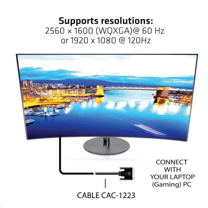 Please use one of our DVI-D (Extension/Adapter) cables to connect to your devices: In case you need assistance to choose the correct cable, please visit our website www.club-3d.com or feel free to mail us at support@club-3d.com and it will be our pleasure to assist you