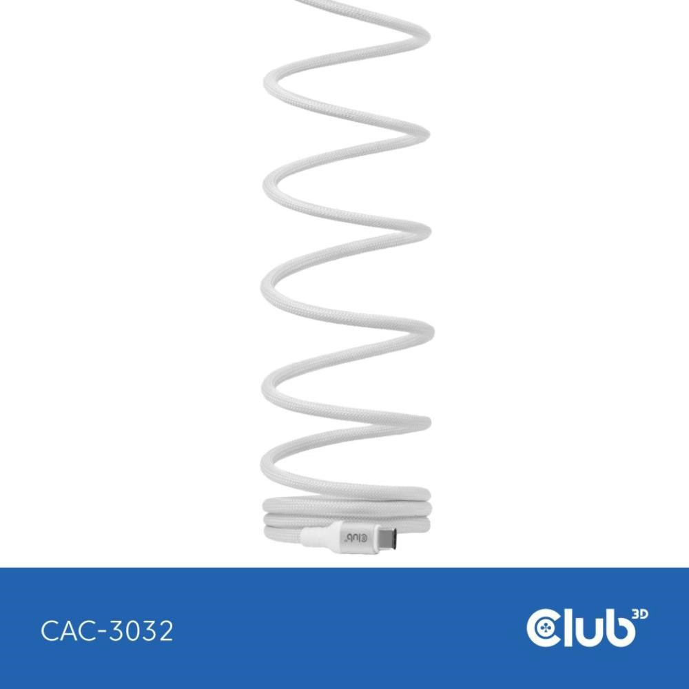 Club3D Kabel magnetický USB-C, 240W PD3.1, 480 Mbps, 2m, bílá