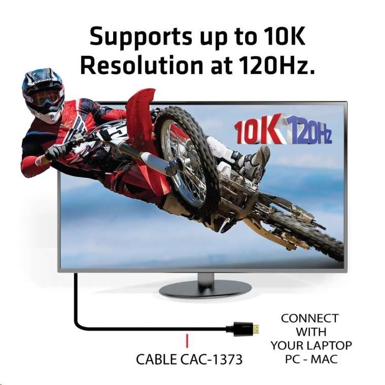CAC-1373 -The Club 3D Ultra High Speed HDMI™ Cable is build to handle the highest quality video- and audio signals. HDMI™ has an increased Bandwidth of 48Gbps. The increase in maximum bandwidth compared to previous versions is achieved by increasing both the Bitrate of the data channels (from 6Gbps to 12Gbps) and the number of channels (from 3 to 4). This allows support for resolutions up to supports 10K at 120Hz!