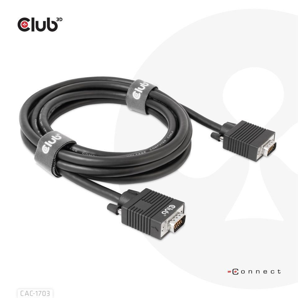 The Club 3D CAC-1703 VGA Cable Bidirectional M/M 3m/9.84ft 28AWG links any VGA-equipped desktop, laptop or adapter to a monitor, display, beamer or projector with a 15-pin VGA Female port. Ideal for at home or work, the cable creates a reliable connection for anything from gaming to video projection and supports up to Full HD 1080p (max. resolution of 1920 x 1080).
