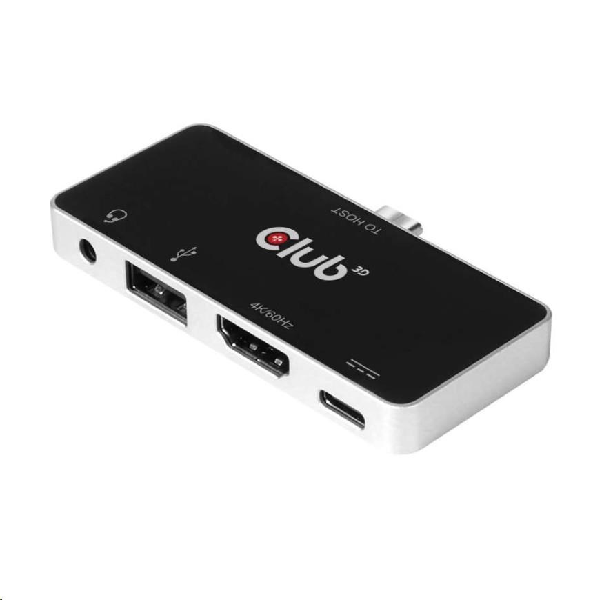 Club3D Dokovací stanice pro mobilní telefony USB-C 4v1, 1xHDMI, 1xUSB-C, 1xUSB, 1x3.5mm, černá