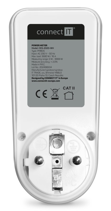 Digitální měřič CONNECT IT "PowerMeter Pro" s jednoduchým designem slouží k měření spotřeby elektrické energie různých domácích spotřebičů. Měřič disponuje velkým podsvíceným LED displejem a jednoduchým ovládáním. Díky tomu je velmi přehledný a spolehlivý.