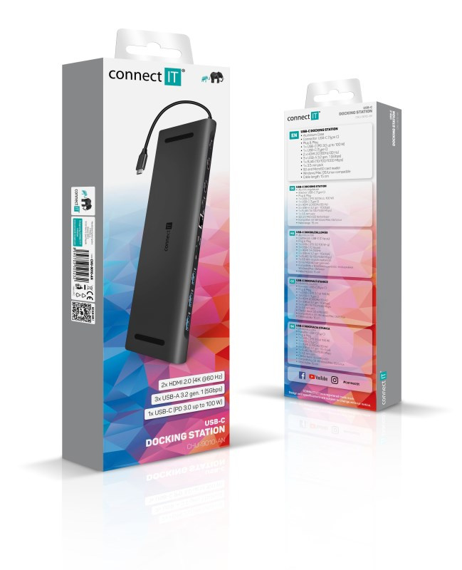 CONNECT IT Dokovací stanice USB-C 11v1, 2xHDMI, 2xUSB-C, 3xUSB, 1xRJ45, čtečka SD karet, černá