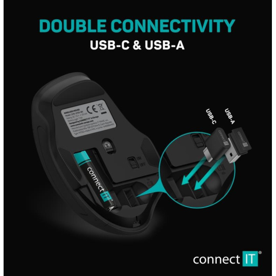 CONNECT IT Dual SmartSwitch bezdrátová myš, USB-A + C (+1x AA baterie zdarma), šedá