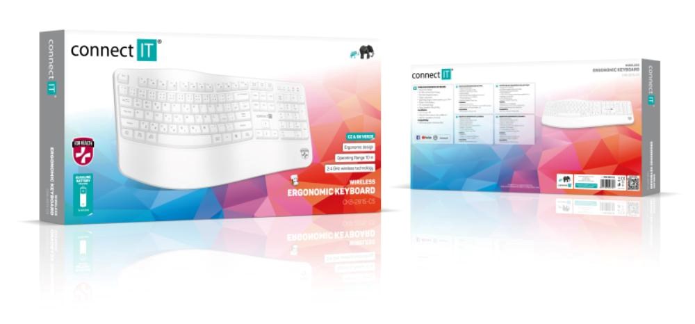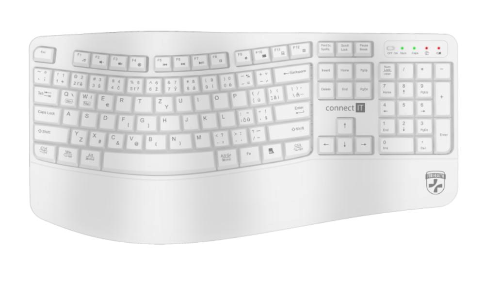 CONNECT IT FOR HEALTH Ergonomická klávesnice ErgoOffice, Bezdrátová, CZ+SK, bílá