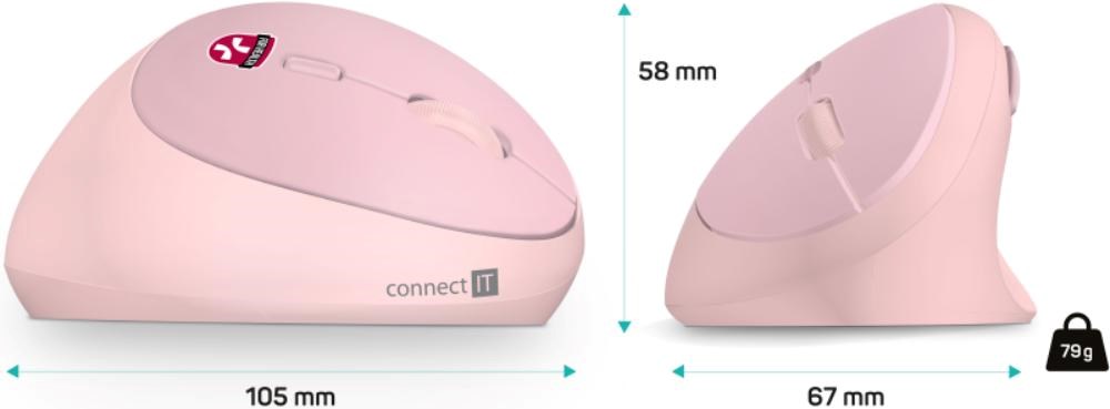 CONNECT IT FOR HEALTH LADIES PINK Bezdrátová vertikální myš, ergonomická, růžová