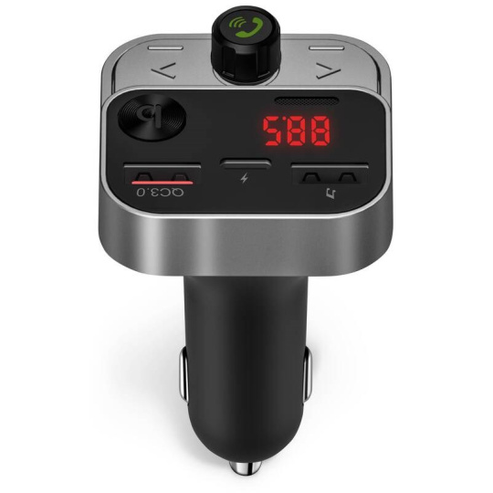 Bluetooth transmitter v kombinaci se tříportovou nabíječkou je multifunkčí zařízení do vašeho automobilu, díky němuž můžete nejen nabíjet mobilní zařízení, ale také poslouchat hudbu ze svého USB flash disku nebo mobilního telefonu. Transmitter je vybaven digitálním displejem a čtyřmi ovládacími tlačítky pro jednoduché a komfortní ovládání všech funkcí. Samozřejmostí u tohoto zařízení je i možnost bezdrátového spárování s vašim mobilním telefonem pro uskutečňování telefonních hovorů. Pro tento účel nechybí ani vestavěný mikrofon.