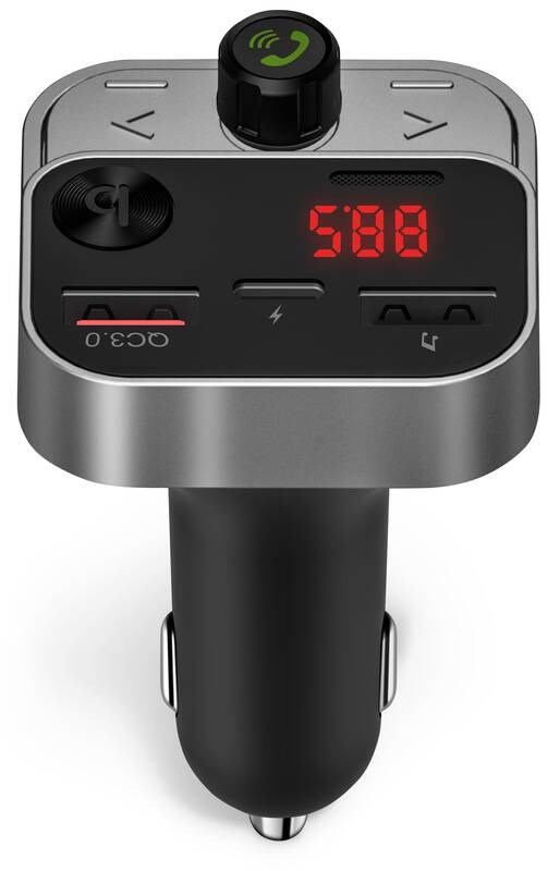 Bluetooth transmitter v kombinaci se tříportovou nabíječkou je multifunkčí zařízení do vašeho automobilu, díky němuž můžete nejen nabíjet mobilní zařízení, ale také poslouchat hudbu ze svého USB flash disku nebo mobilního telefonu. Transmitter je vybaven digitálním displejem a čtyřmi ovládacími tlačítky pro jednoduché a komfortní ovládání všech funkcí. Samozřejmostí u tohoto zařízení je i možnost bezdrátového spárování s vašim mobilním telefonem pro uskutečňování telefonních hovorů. Pro tento účel nechybí ani vestavěný mikrofon.