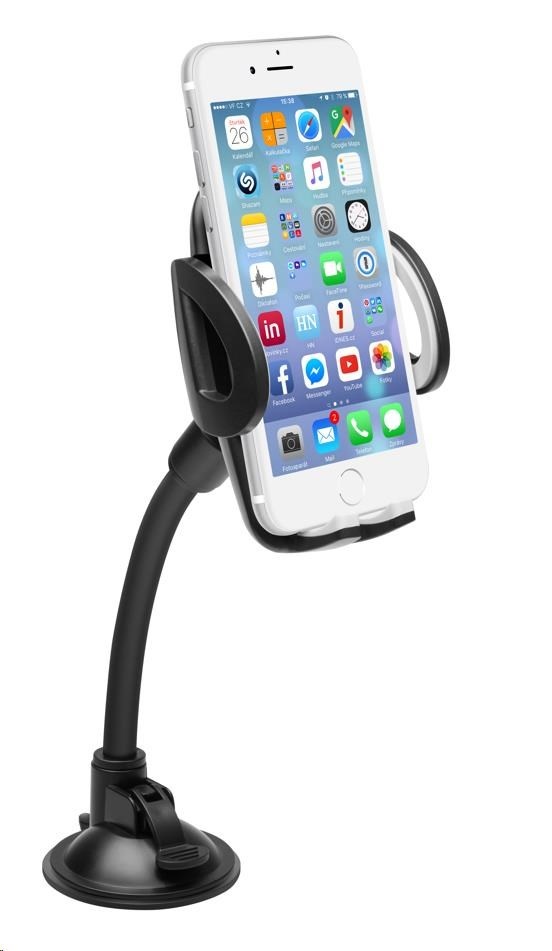 Univerzální držák do auta slouží k uchycení mobilního telefonu na sklo nebo palubní desku vozu.