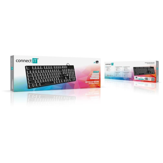 CONNECT IT kancelářská podsvícená klávesnice Chocolate WhiteStar, CZ + SK verze, černá