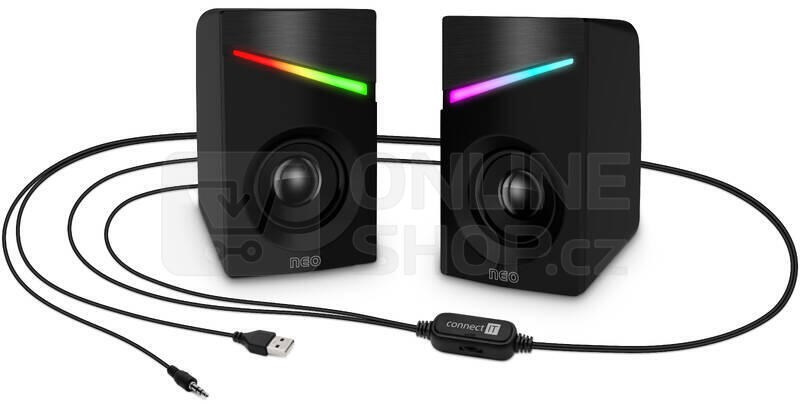 CONNECT IT Reproduktory NEO PC, RGB, USB, 3,5mm, černé