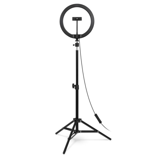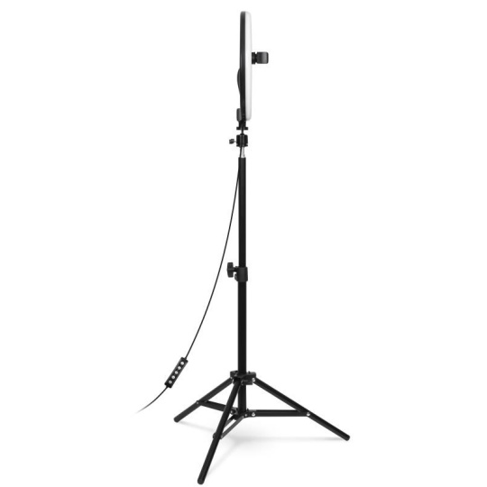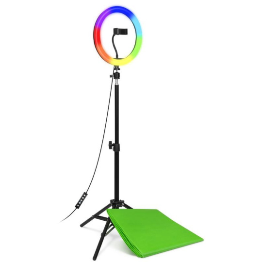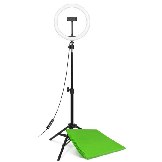 | Obsah balení | Kruhové LED světlo Přívodní kabel s dálkovým ovládáním Flexibilní držák mobilního telefonu Stativ s kulovou hlavou Green screen Návod k obsluze |