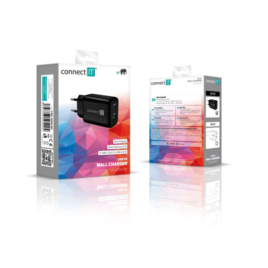 Cestovní USB nabíječka CONNECT IT "Wanderer2" s technologií GaN, určená pro napájení i nabíjení mobilních telefonů, tabletů, power bank, akčních kamer, elektronických čteček knih, MP3 a MP4 přehrávačů, herních konzolí a mnoha dalších přenosných zařízení doma, v kanceláři i na cestách. Technologie Power Delivery (PD) umožňuje rychlonabíjení o výkonu 33 W.