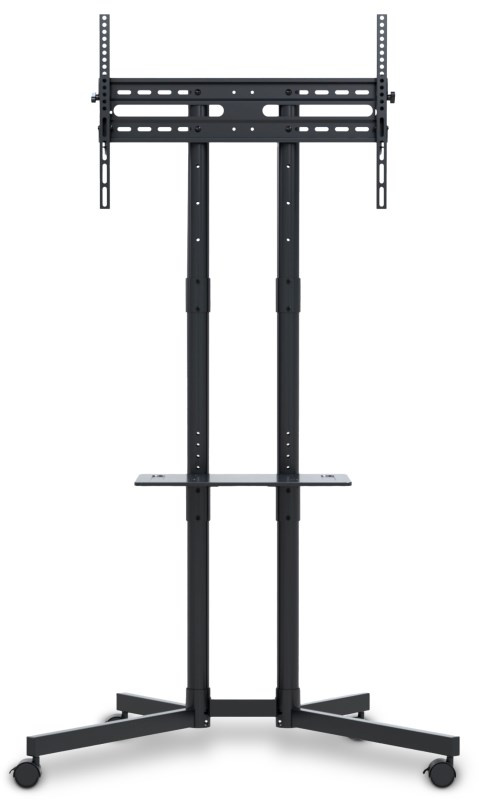 Velmi praktický pojízdný stojan je určen pro variabilní umístění TV kdekoliv v interiéru. Díky stojanu můžete přesouvat TV rychle a pohodlně kamkoliv podle potřeby. Navíc je vybaven praktickou poličkou na DVD, Set-top box atp. Robustní konstrukce z oceli unese spolehlivě až 40 kg obrazovku. Police má nosnost 10 kg. Stojan je kompatibilní s obrazovkami do úhlopříčky do 70" a pro nejvyšší možnou stabilitu je vybaven kolečky s brzdovou mechanikou proti nechtěnému pojezdu.