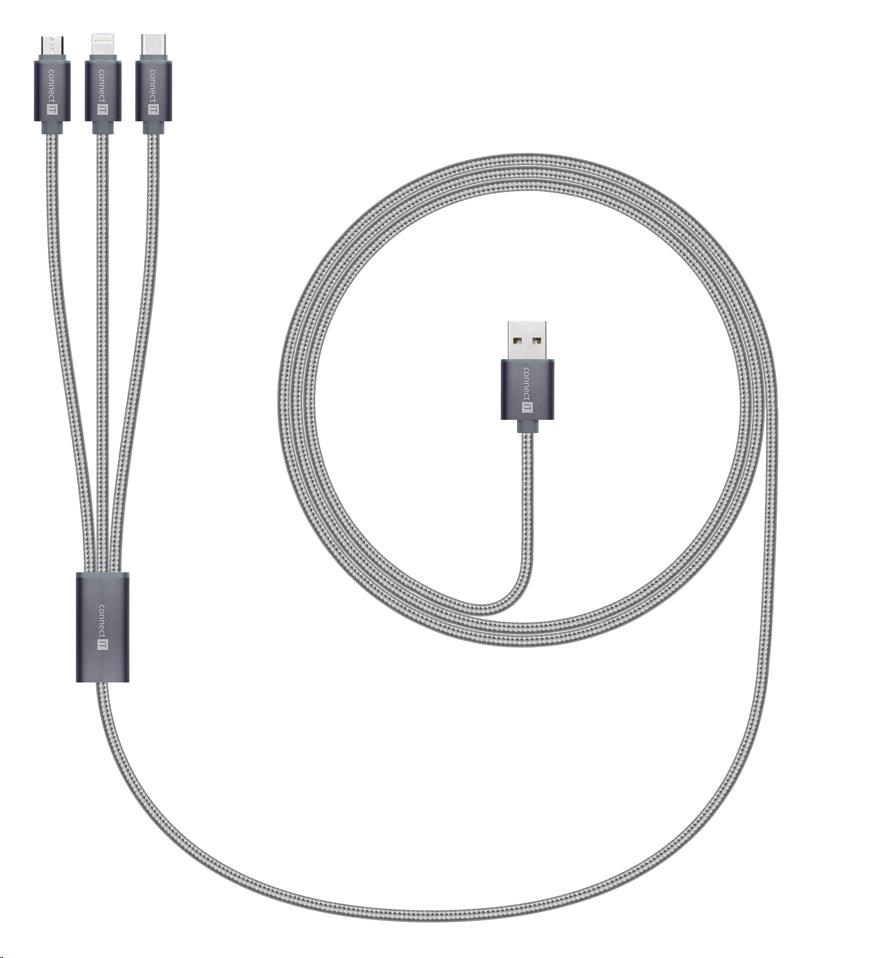 CONNECT IT Wirez 3in1 USB-C & Micro USB & Lightning, silver gray, 1,2 m