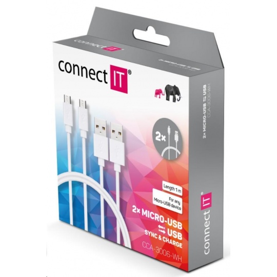 CONNECT IT Wirez Micro USB - USB, bílý, 1 m (2 ks v balení)