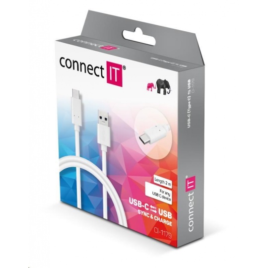 CONNECT IT Wirez USB-C (Type C) -> USB-A, USB 3.1 Gen 1, bílá, 2 m
