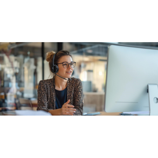 Profesionální náhlavní souprava pro online komunikaci a každodenní pracovní využití.