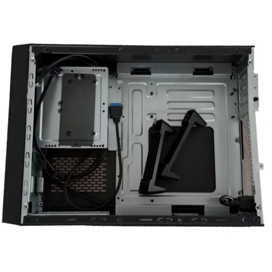 Pro osazení můžete využít 3.5“ a 2.5“ slot pro HDD a SDD. Interiér se chlubí povrchovou úpravou třídy A SPCC o vydatnosti vrstvy 0.4 mm. Tato skříň je primárně určena pro základní desky formátu M-ATX/mini ITX.